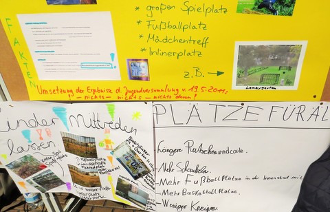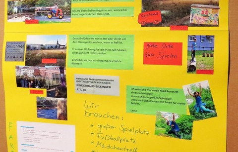 Auch für die Quartiersarbeit zeigen die Beiträge der Kinder wichtige Bedarfe an, insofern sollen diese auch in die Entwicklung eines integrierten Handlungskonzepts einfließen. Auch die vielen engagierten Erwachsenen im Quartier haben von den Kindern bei vielen - gefühlt auch manchmal gebetsmühlenartig vorgebrachten - Forderungen Rückendeckung erhalten: Bolzplätze, Mehrzweckraum und eine Verbesserung des subjektiven Sicherheitsgefühls auf Straßen und Plätzen sind auch für die kleinsten Unterstadtbewohner ganz zentrale Anliegen.