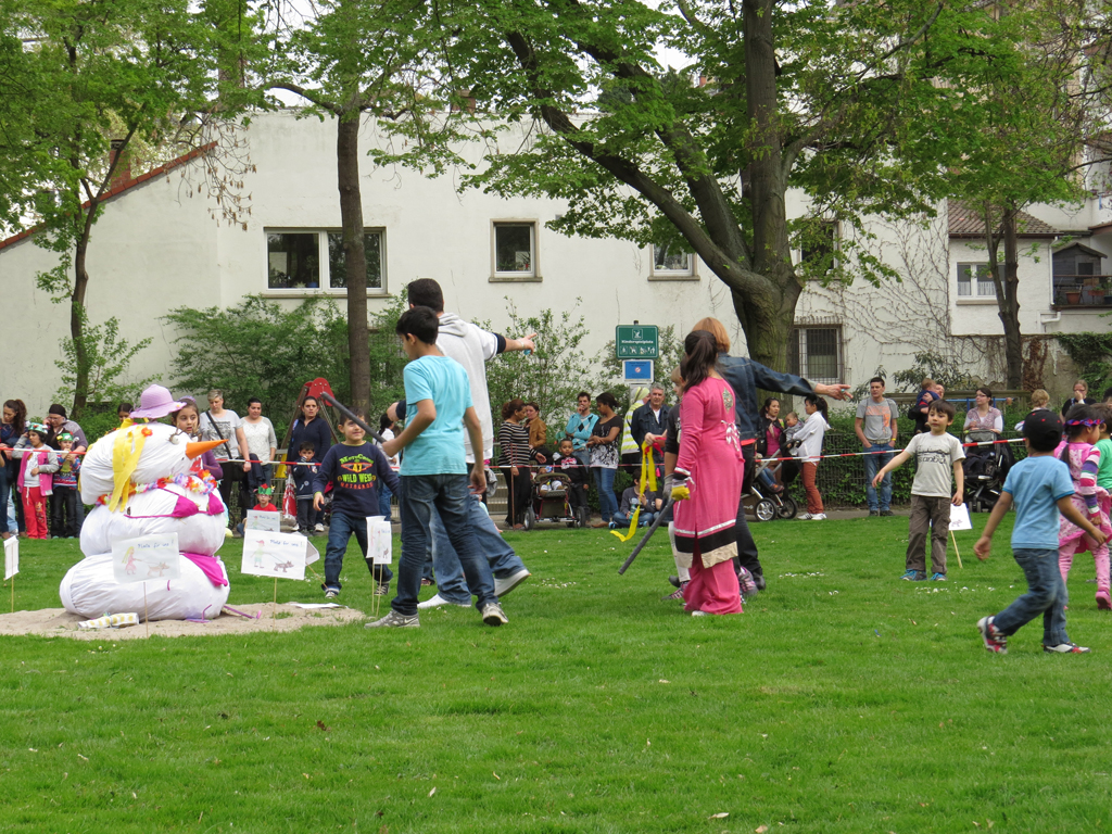 Höhepunkt vor dem Verbrennen des Schneemanns ist das von den Kindern selbst abwechslungsreich gestaltete Programm im Lamey-Garten, wo mit Liedern, Spiel und Tanz der Winter verabschiedet und der Frühling begrüßt wird. Mit dem Motto „Es lebe der Lamey-Garten“ soll auf die Qualität grüner Flächen in der Stadt besonders aufmerksam gemacht werden.
