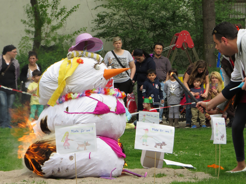 Höhepunkt vor dem Verbrennen des Schneemanns ist das von den Kindern selbst abwechslungsreich gestaltete Programm im Lamey-Garten, wo mit Liedern, Spiel und Tanz der Winter verabschiedet und der Frühling begrüßt wird. Mit dem Motto „Es lebe der Lamey-Garten“ soll auf die Qualität grüner Flächen in der Stadt besonders aufmerksam gemacht werden.